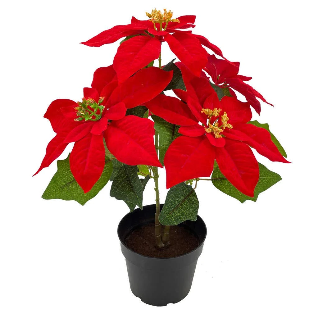 Botanic Lifestyles Artificial Poinsettia is the perfect item to bring holiday cheer to any room. Carefully handcrafted that it looks almost real! Easily add classic Christmas decor with this lifelike poinsettia. Each of the flowers has numerous petals creating a beautiful full flower contrasting with the dark green leaves. Capturing the Christmas vibe this decorative piece will make any space inviting whether it is in your home or office.