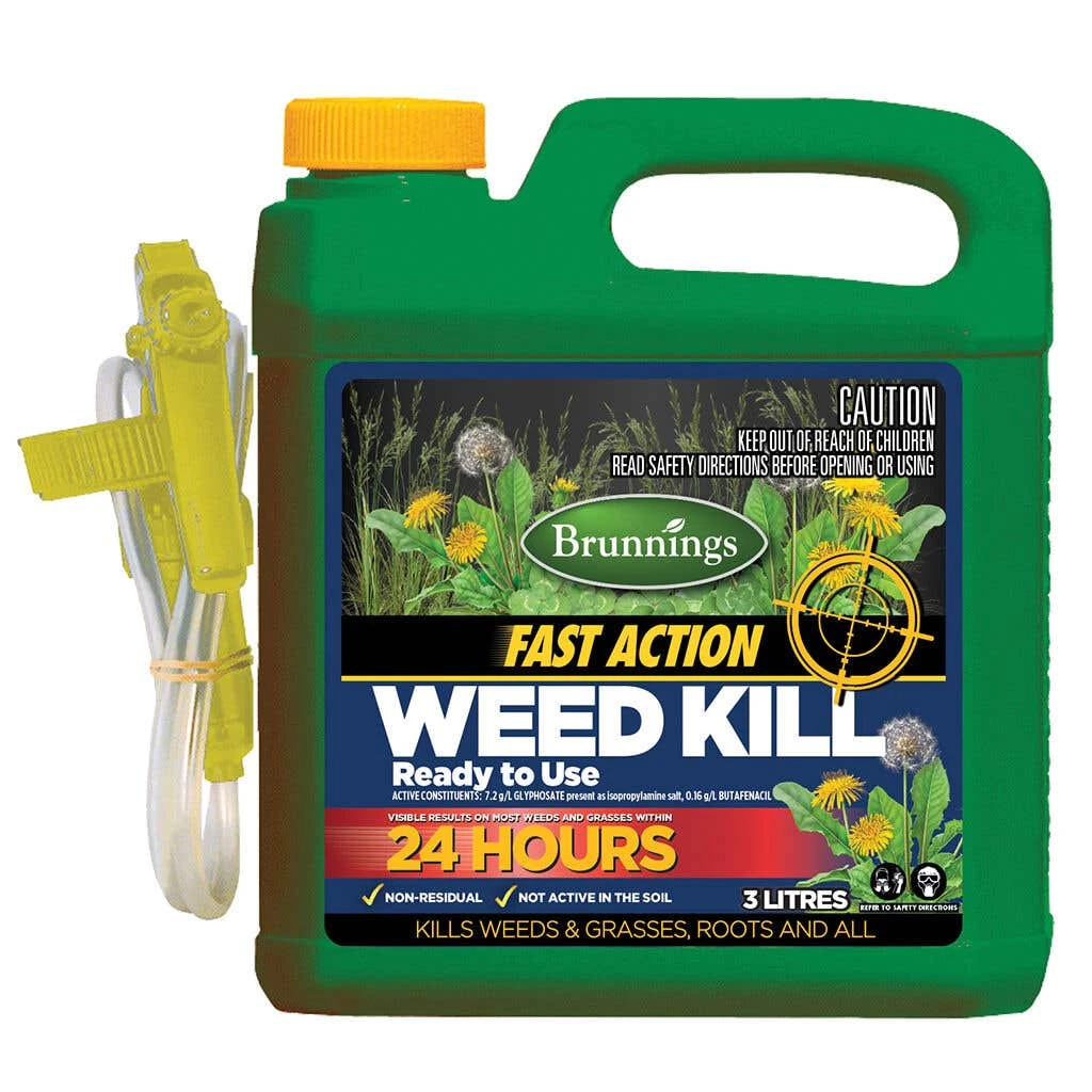 Brunnings Fast Action Weed Kill is a rapid-acting weed killer that will show visible results in 24 hours. It is suitable for paths, driveways, garden beds, lawn edges, and rockeries. The Fast Action formulation kills all weeds it contacts but is non-residual enabling plants to be grown in the treated area, normally within 14 days of treatment. This makes it ideal for garden beds.