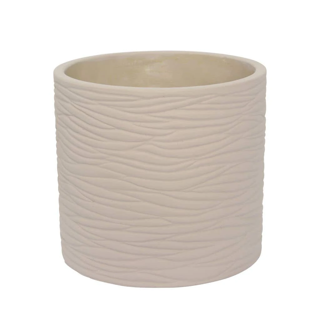 This beautiful cement planter pot makes a stunning feature in any home. Carter Planter Pot Warm Grey is a unique cement planter pot that features a ribbed design and a Warm Grey finish. Its ribbed design adds texture and detail to your living space. The planter will make an ideal home for your favourite plants and flowers, or a centrepiece in any covered outdoor space. This planter pot has an H16.5cm x W18cm dimension, perfect for small plants and flowers.