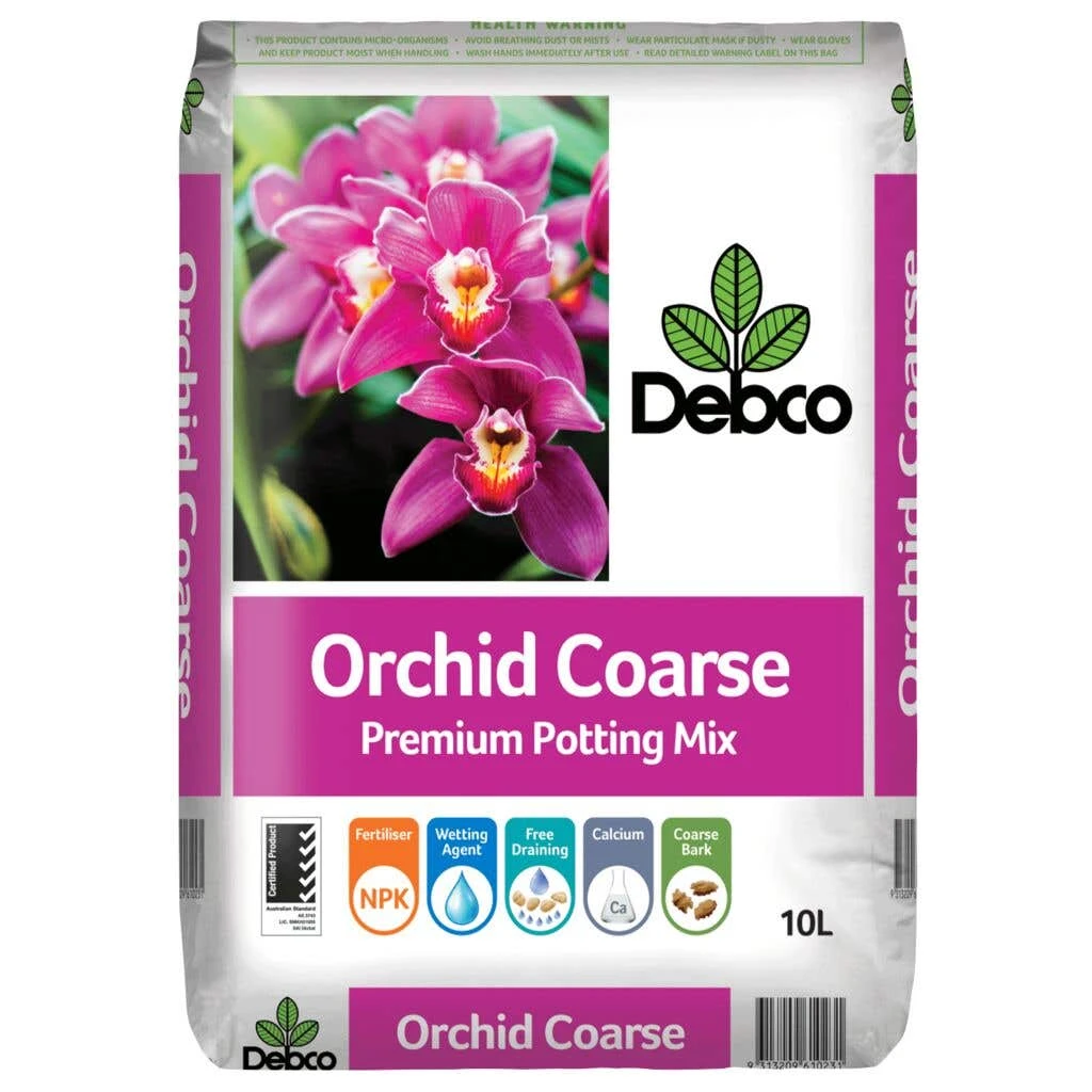 Your orchids need a healthy environment to grow. Debco Orchid Coarse Premium Potting Mix contains quality key additives to deliver optimal growth for epiphytic Orchids such as Cattleyas, Oncidiums and Dendrobiums as well as large ones like Cymbidium Orchids. Ideal for 6-inch or greater pots, this mix is specifically formulated from premium graded pine bark with superior drainage and aeration for optimal plant establishment and development.