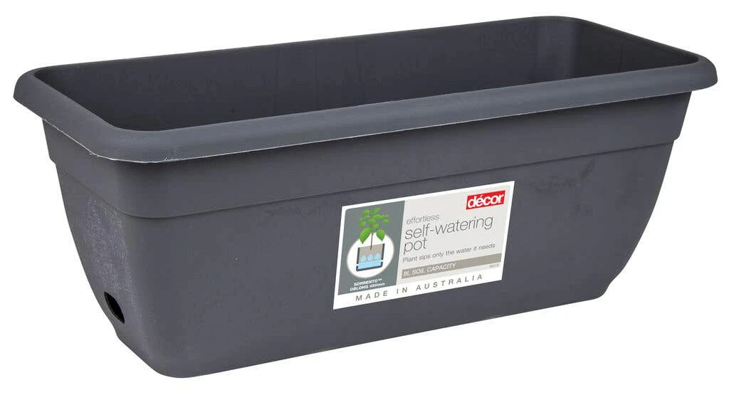 The Self-watering Pot is equipped with an inbuilt water reserve so your plants can take the water they need when they need it. The ventilated floor helps aerate root systems and stores up to 4 weeks of water (depending on the plant), making this a unique product for those who are looking to get their plants off to a good start. The pewter colour makes it ideal for decorative gardens, or as an accent piece within any outdoor space.