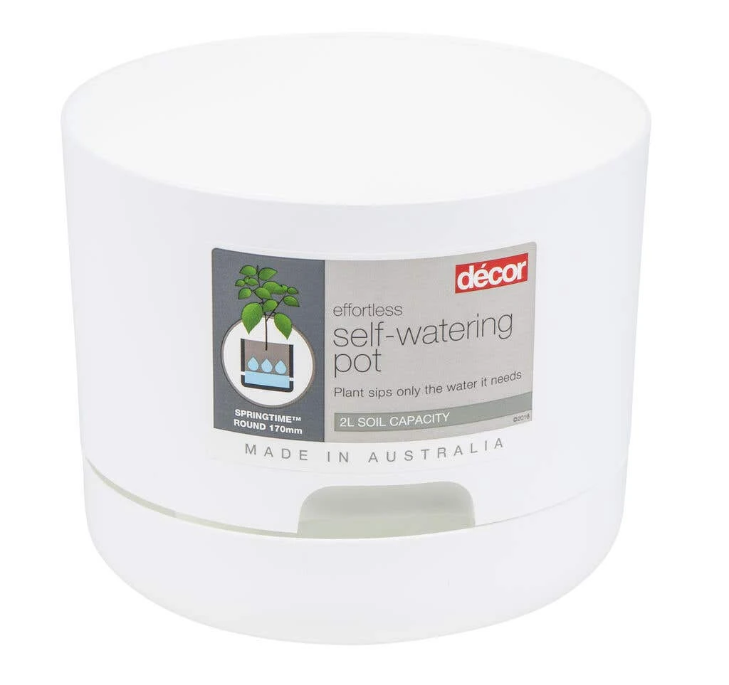 The Self-Watering White Plastic Pot is stylish and practical, with a self-watering in-built water reserve to ensure your plants have the water they need. The water reservoir holds 2 litres of potting mix, ensuring even plants are watered evenly and effectively. Made from plastic, this quality planter has a matt finish that blends in with any type of decor.