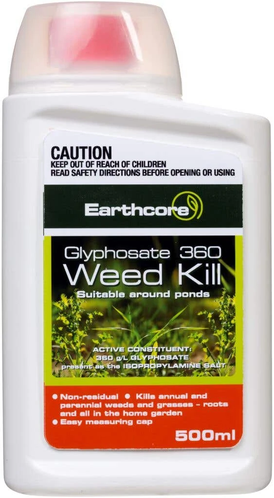 Earthcore Glyphosate Weed Killer 360 is a non-residual foliar weed killer that kills and controls annual and perennial weeds and grasses in the home garden. Glyphosate Weed Killer 360 is particularly effective around ponds, irrigation systems, garden beds and borders. Glyphosate is low-toxicity to mammals as well as non-phytotoxic to aquatic life. It gets into the whole plant, roots and all and only where you apply it, so there are no residues to contaminate your soil or waterways. A measuring cup is included so that you can use the correct concentration of weed killer for your needs.