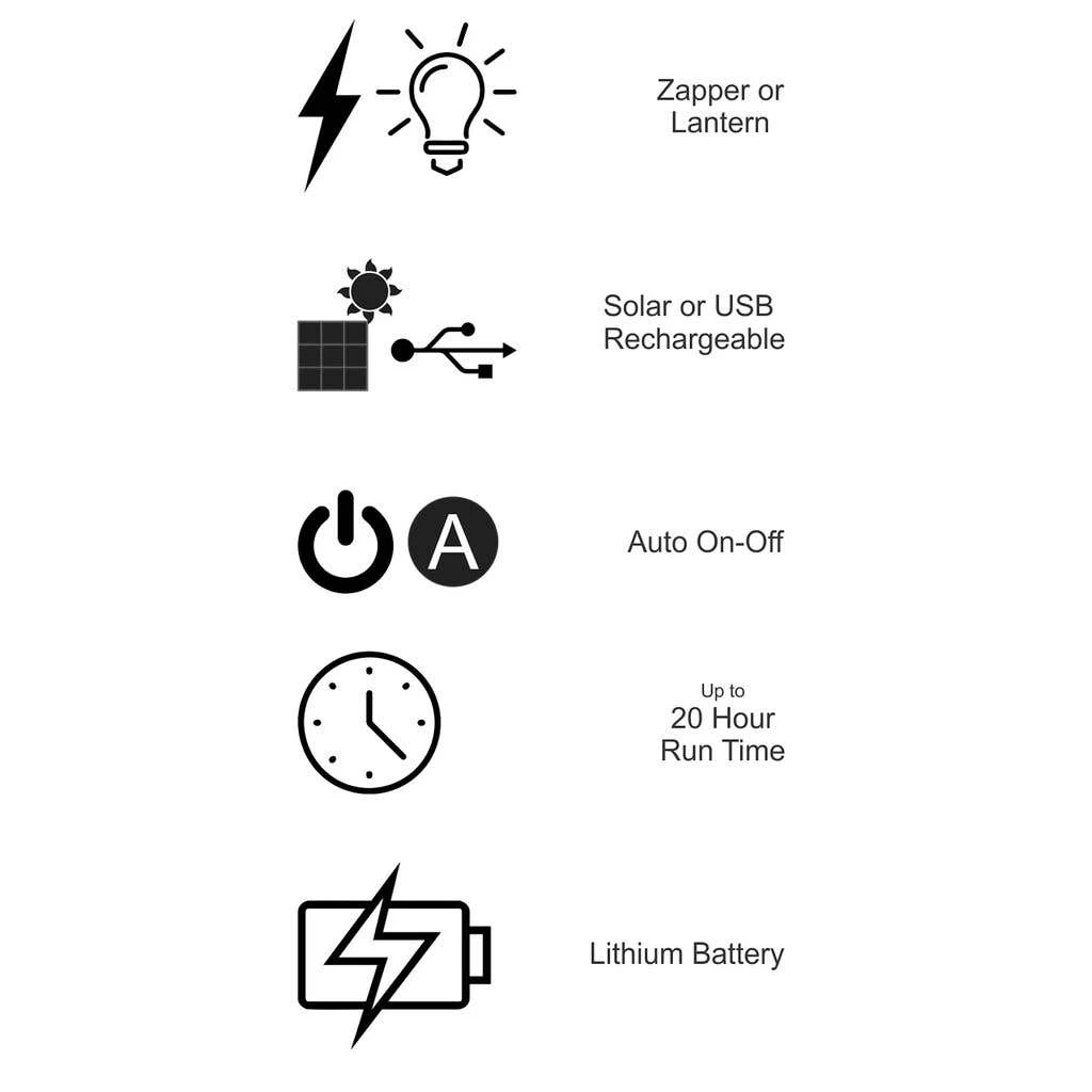 The Gecko LT4S is the go anywhere rechargeable insect control solution that also functions as a lantern. Charge using either the solar panel or from a USB source (USB cable supplied).