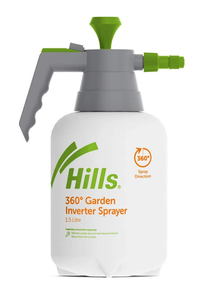 Delivering a 360-degree spray pattern for spraying upside down, the Hills Garden 1.5L Inverter Sprayer is versatile and easy to use. With a lockable trigger for continuous spraying and an adjustable nozzle from fine mist to jet spray, this sprayer is suitable for various applications. It’s lightweight and comfortable to use with a UV stabilised plastic bottle.