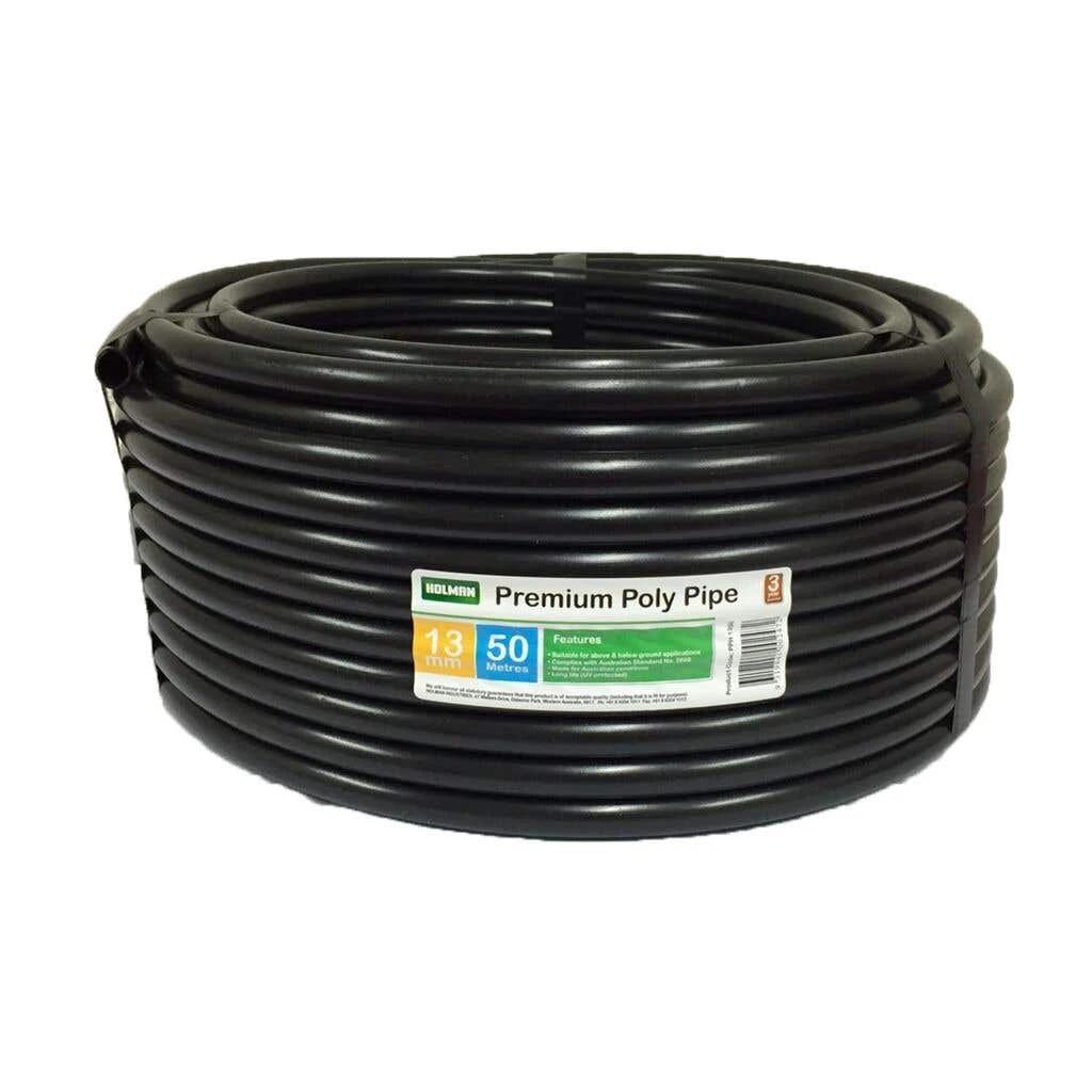 The Holman Premium Poly Pipe in 13mm x 50m is a top-quality irrigation solution designed for versatility and reliability. Crafted from premium materials, this poly tube is specifically tailored for various irrigation applications. Its low-density composition ensures flexibility and ease of handling, making it a practical choice for both above and below-ground installations. The pipe readily accepts standard barbed micro fittings, facilitating a seamless integration into your irrigation system. Poly tube is used for irrigation applications ranging from watering your garden bed to having a full-scale watering system that includes all garden areas. Use poly tubes when setting up spray systems, drip systems and sprinkler systems.