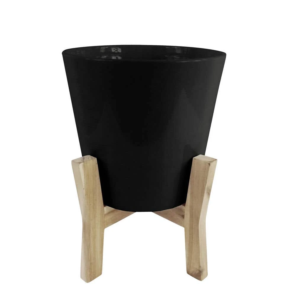 - Pot with wooden timber stand