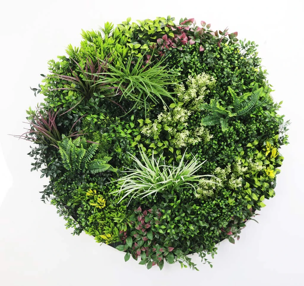 Bring the beauty of nature indoors with the Slimline Artificial Green Wall Disc Art. Measuring 1m in diameter, this stunning piece will instantly transform any space into a lush and vibrant oasis. The fresh, lifelike greens are UV resistant, ensuring long-lasting beauty even in direct sunlight. The black colour of the disc provides a sleek and modern contrast, making it the perfect addition to any contemporary décor. Whether you’re looking to liven up a dull office or create a warm and inviting atmosphere in your home, this piece of art is sure to leave a lasting impression on all who see it.