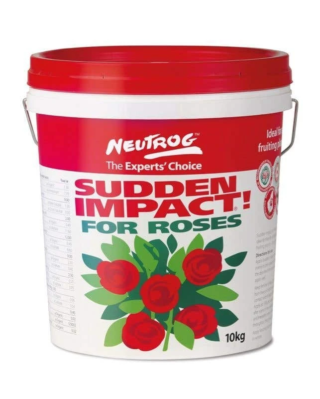 Sudden Impact for Roses is ideal for all flowering plants except natives and bare-rooted roses. Its organic base provides a full range of plant nutrients in a slow release form, whilst the carefully selected water-soluble nutrients have been added to maximise the performance of each application. The balance and ratio of nutrients combined with the very best raw materials are the secret to the success of Sudden Impact for Roses. The organic raw materials are conditioned utilising a unique composting process and once completed, the water-soluble nutrients are carefully blended into the organic base before being pasteurised and pelleted.