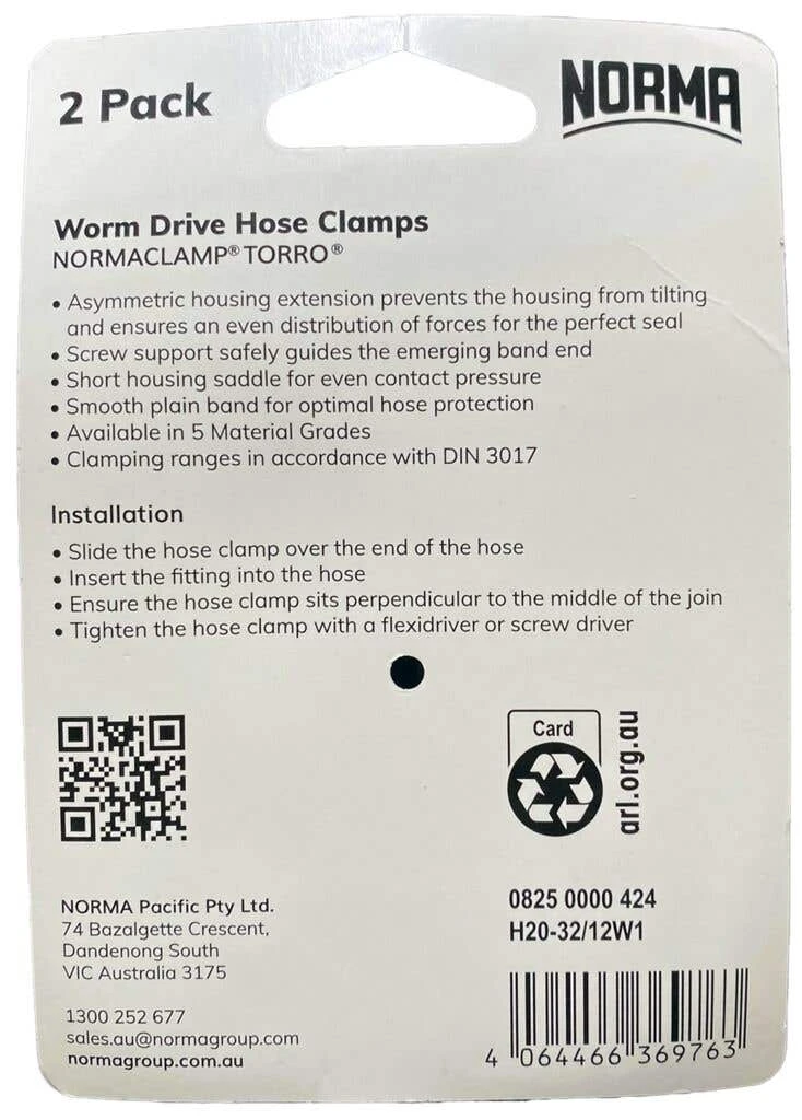 The NORMACLAMP TORRO Plain Band Worm Drive Hose Clamp offers reliable and secure fastening for hoses. Its design incorporates an asymmetric housing that effectively prevents tilting during assembly, ensuring an even distribution of forces for enhanced stability. The clamp is equipped with a Phillips/Hexagonal head, making it compatible with various tools such as a screwdriver, , and the dedicated Norma Tool, thereby facilitating convenient and efficient installation. This hose clamp is designed to deliver durability and long-lasting performance for a diverse range of applications.