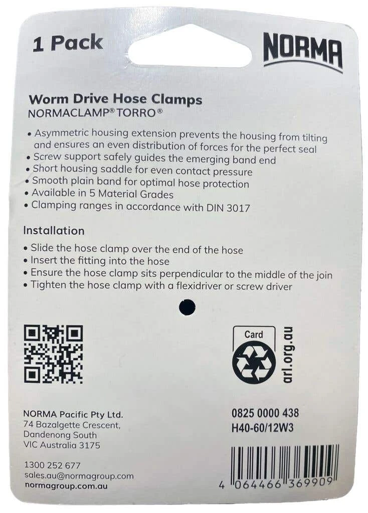 The NORMACLAMP TORRO Plain Band Worm Drive Hose Clamp offers reliable and secure fastening for hoses. Its design incorporates an asymmetric housing that effectively prevents tilting during assembly, ensuring an even distribution of forces for enhanced stability. The clamp is equipped with a Phillips/Hexagonal head, making it compatible with various tools such as a screwdriver, , and the dedicated Norma Tool, thereby facilitating convenient and efficient installation. This hose clamp is designed to deliver durability and long-lasting performance for a diverse range of applications.