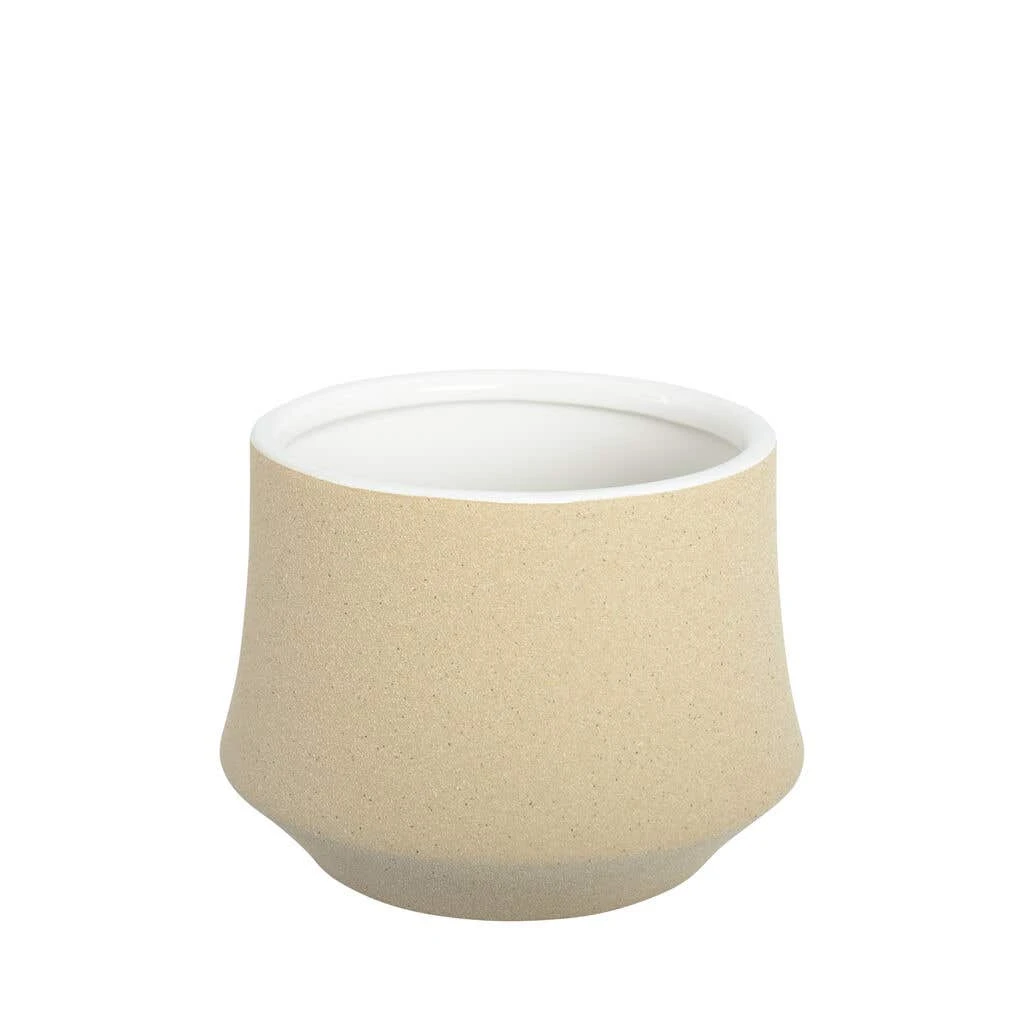 This beautiful ceramic pot is a great decorative piece for indoor areas. Add your favourite plants and enjoy. This pot has a textured finish with and a hole in the base to help with drainage.