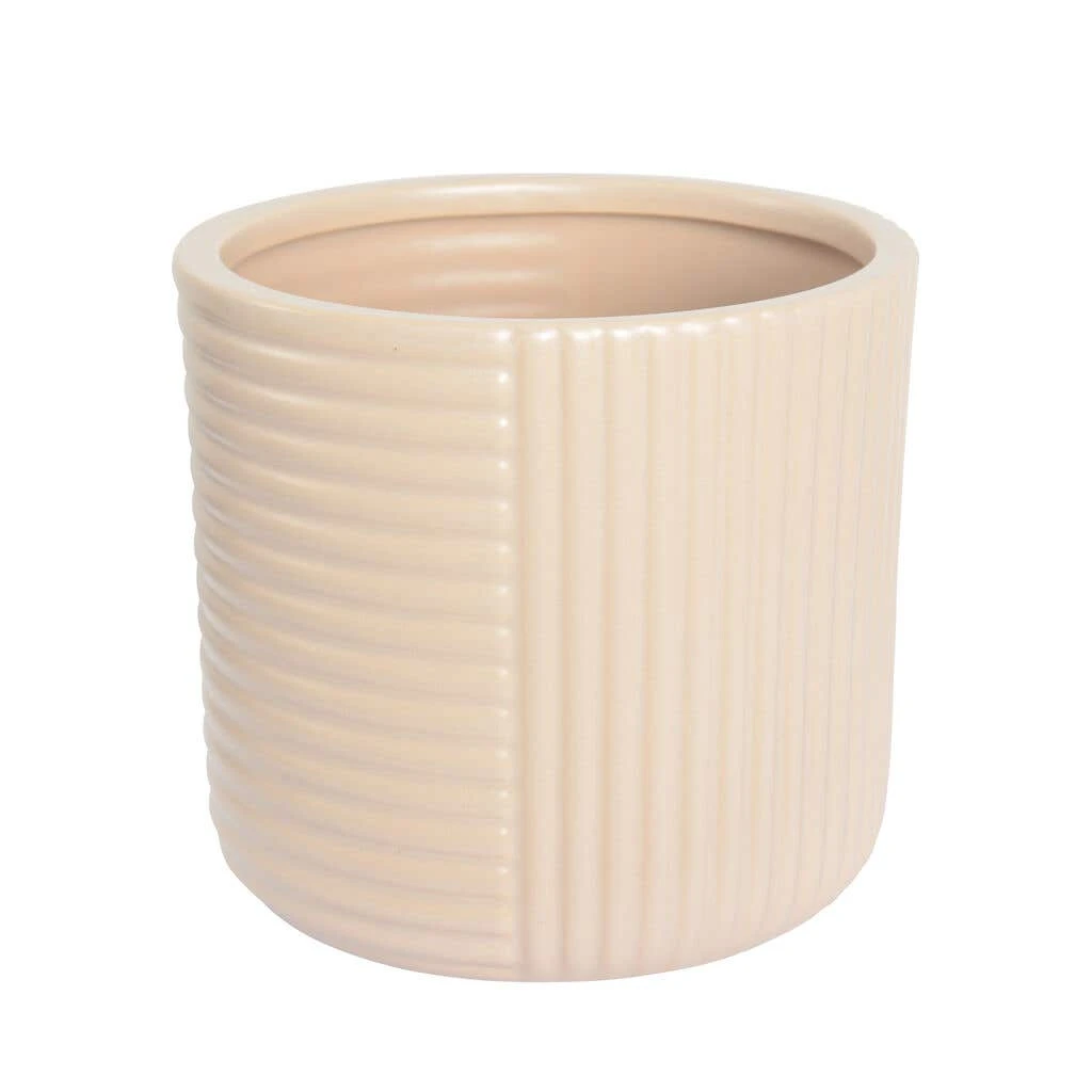 This beautiful ceramic pot is a great decorative piece for indoor or covered outdoor areas. Add your favourite plants and enjoy. This pot has a ribbed design and a hole in the base to help with drainage.