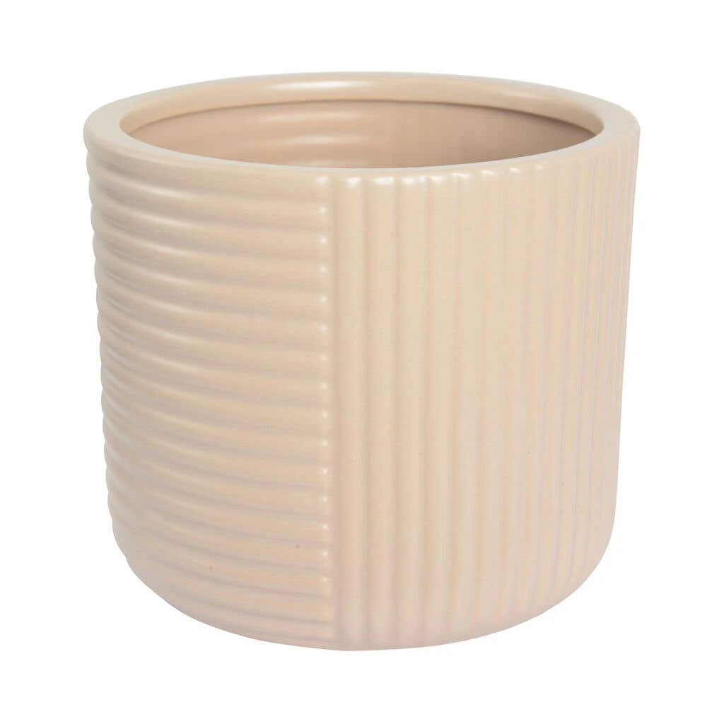 This beautiful ceramic pot is a great decorative piece for indoor or covered outdoor areas. Add your favourite plants and enjoy. This pot has a ribbed design and a hole in the base to help with drainage.