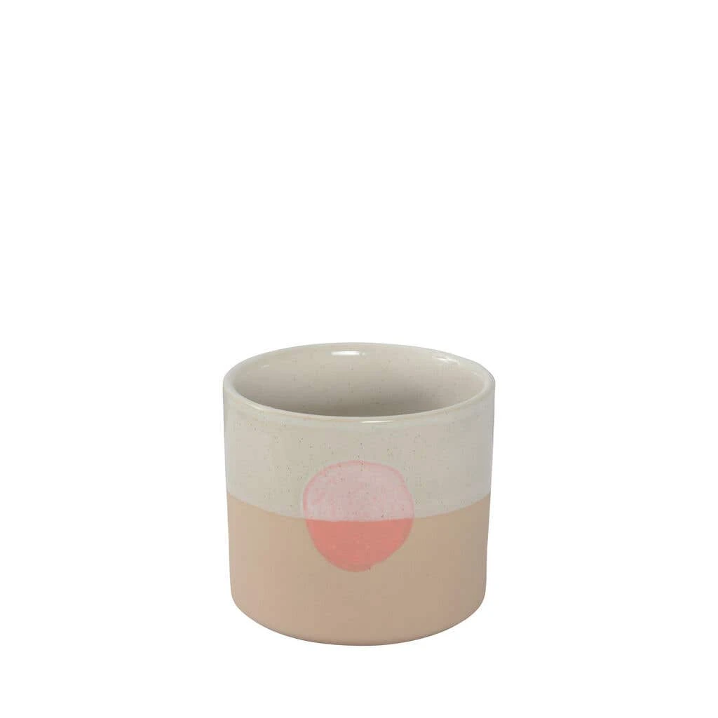 This beautiful ceramic pot is a great decorative piece for indoor areas. Add your favourite plants and enjoy. This pot has a gloss glaze with a painted icon and a hole in the base to help with drainage.