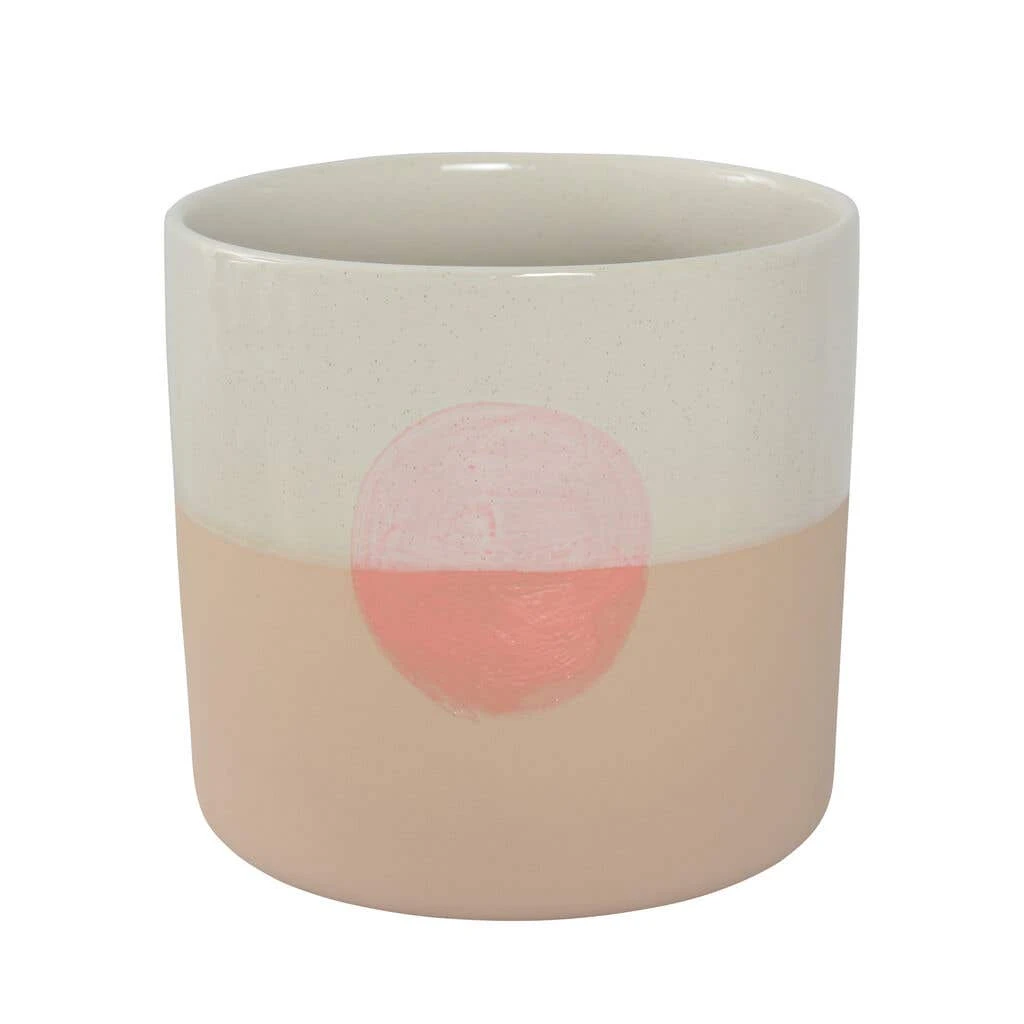 This beautiful ceramic pot is a great decorative piece for indoor areas. Add your favourite plants and enjoy. This pot has a Gloss glaze with a fine textured base and hand painted icon. Pot has a hole in the base to help with drainage.