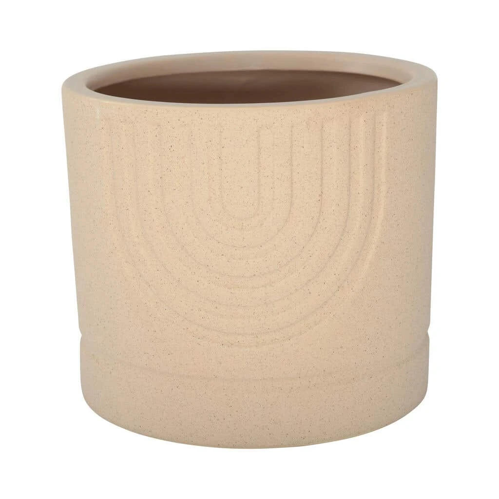 This beautiful ceramic pot is a great decorative piece for indoor or covered outdoor areas. Add your favourite plants and enjoy. This pot has a debossed design and a hole in the base to help with drainage.