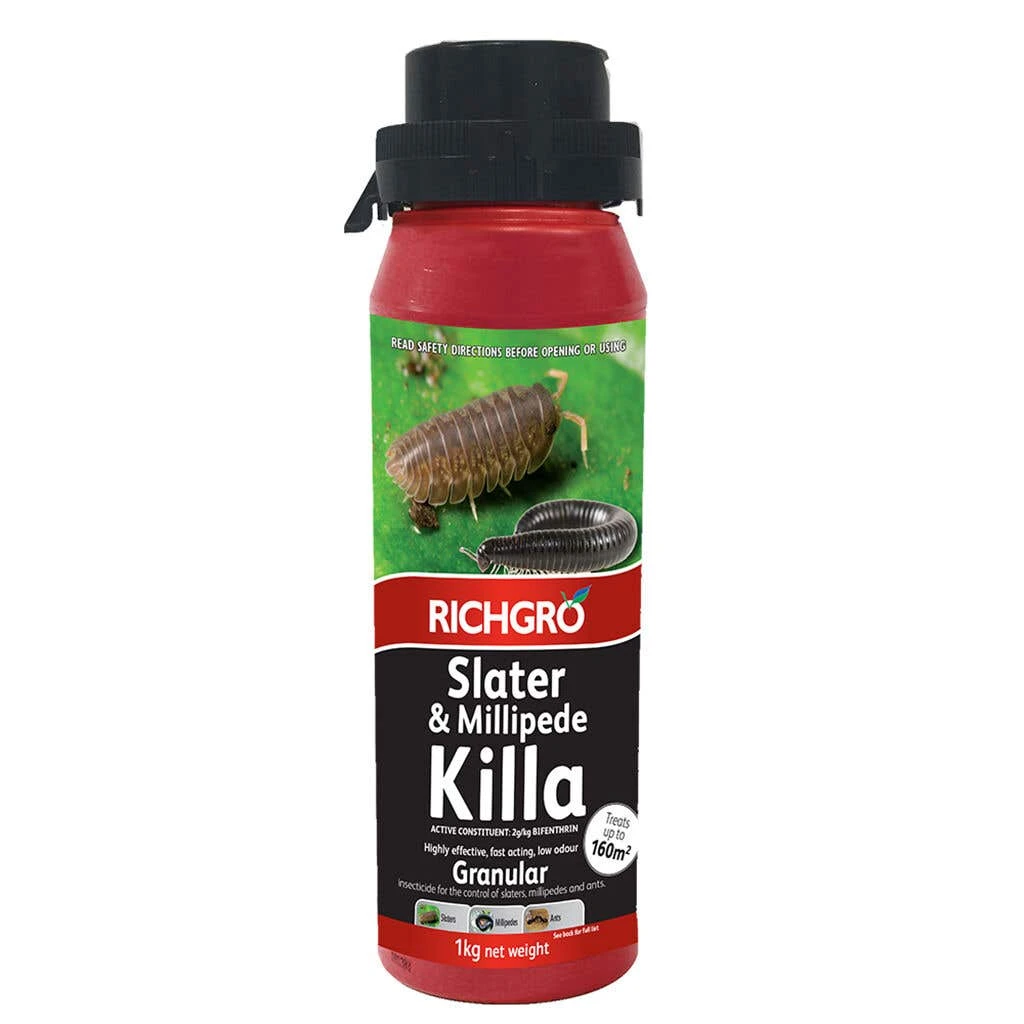 Slaters, millipedes and ants can be a real problem in the garden. Millipedes have a habit of burrowing through the mulch and destroying seeds, seedlings and plant roots. Slaters live under mulch, in walls or under pots and eat the roots of seedlings, cucumbers and melons. Richgro Slater & Millipede Killa is ideal for the effective control of slaters, millipede and ants. Highly effective and fast-acting, this granular product is formulated to be low in odour and easy to apply.