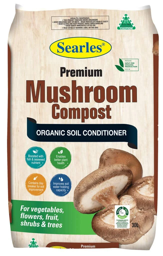 Composts, are very high in nutrient value and when freshly composted, may emit a strong, sweet earthy aroma. This aroma is natural and over time naturally decreases as the product matures. Due to the current very high demand for these products some of our compost products are not being stored or matured enough for the smell to decrease before sold. Earthy, manure aromas are not an indicator of performance and Searles products are fully composted, meeting our rigorist testing standards for high nutrient content and exceptional product performance. All batches are tested before being packaged and available for market. When using compost in the garden, we always recommend blending one half compost to existing soil for the best result. Searles composts, mushroom compost and manure aroma is an indicator of the rich organic ingredients contained in these products.