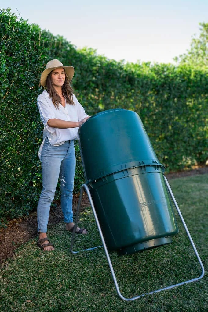 The Tumbleweed 220L Compost Tumbler is ideal for small gardens and courtyards – you can even place it on concrete or pavers. You’ll find Tumbleweed’s 220L Compost Tumbler is the easy way to compost – just load the barrel then turn it every few days. A built-in breaker bar will mix and aerate to speed up decomposition.