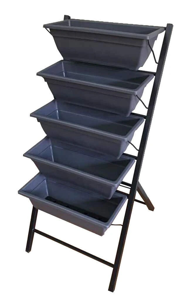 Keep all of your plants, flowers and herbs safe in this Vertical Garden Planter. It includes five rectangular planters in individual rows, supported by a freestanding frame. Easily grow a garden anywhere with this vertical garden planter – it’s perfect for cooking herbs, fruit and vegetables and colourful flowers. Easily install this with no tools required onto your verandah, deck or in your garden. This vertical planter is also perfect for anywhere with limited space such as balconies as it is only 55cm wide. Show off your green thumb and grow a range of plants and flowers with this free standing planter.